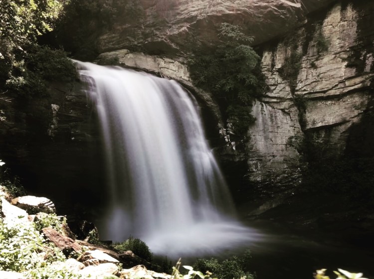 This might be the most popular waterfall in North Carolina because it’s right beside a major US highway and anyone who can fit inside a car can see it. In the summer, the shoulder will be packed with cars. The viewing area and the pool beneath the falls will be inundated with people. If that sounds awful to you, go first thing in the morning or when it’s cold and you’ll have the place all to yourself.