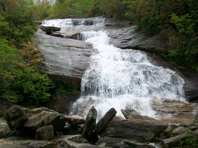 Second Falls, as the name suggests, is the second of two (technically three) waterfalls accessible from Graveyard Fields. Yellowstone Falls, which is downstream from Second Falls, is probably going to become more accessible as time goes on, but right now I wouldn’t recommend it unless you’re feeling extraordinarily capable. There’s also an Upper Falls, but it’s complicated to get to. Second Falls, however, makes a good leg stretcher if you’re passing through on the parkway. The falls tumbles down a few ledges before sliding over a wide, open rock face. There are several massive boulders at the base you can walk out on and enjoy the falls.
