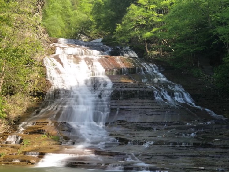 Buttermilk Falls is a long, jagged slide down the mountain. The park where the falls is located contains several more waterfalls up the gorge trail, though not all of them are easily photographed.