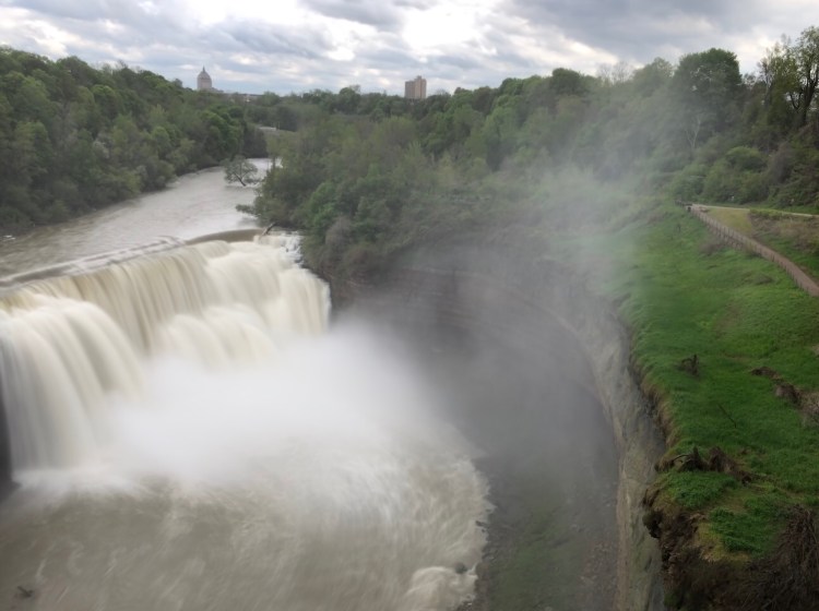 Lower Falls is also in the middle of Rochester, though farther south in a less-than-desirable neighborhood. While there’s a viewing platform dedicated to the falls, it doesn’t provide a full view. In order to see the full falls, you’ll have to walk on the bridge and peer through the chain link fence over the river.