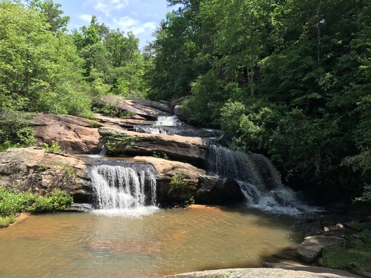And really, unless you’re planning to spend the day at the park, the $2 isn’t worth it just to see the falls. Although it’s listed at 40 feet, it doesn’t look like it. The falls drop over three or four huge sections before emptying into a pool below. The creek then joins the Chauga River a short distance downstream.