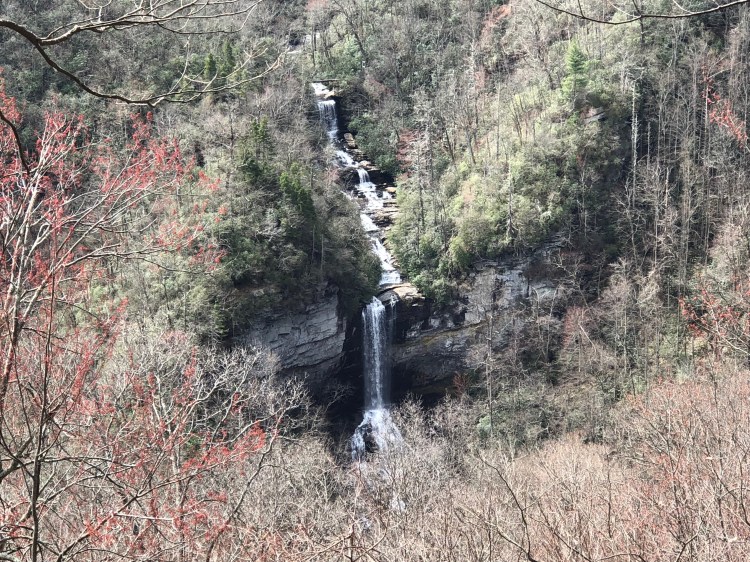 Raven Cliff Falls is a large waterfall in Caesar’s Head State Park just inside the border of South Carolina. The falls start as a series of drops and cascades before ending in a final freefall of likely more than 200 feet. The problem is that you’re looking at the falls from across the gorge and can’t really get much closer unless you’re insane.