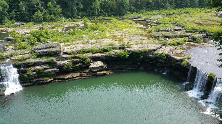 From the intersection of TN highway 136 and Powerhouse Road, cross the river and drive south for 1.2 miles. Turn right onto Great Falls Road at the community of Rock Island. This road actually travels over the ridge where the water for Twin Falls flows through, which is mind-boggling to think that you’re driving over the top of a waterfall. You can also continue on this road to other areas of the park. However, you want the first parking area on the right just after an old building that’s part of the dam.