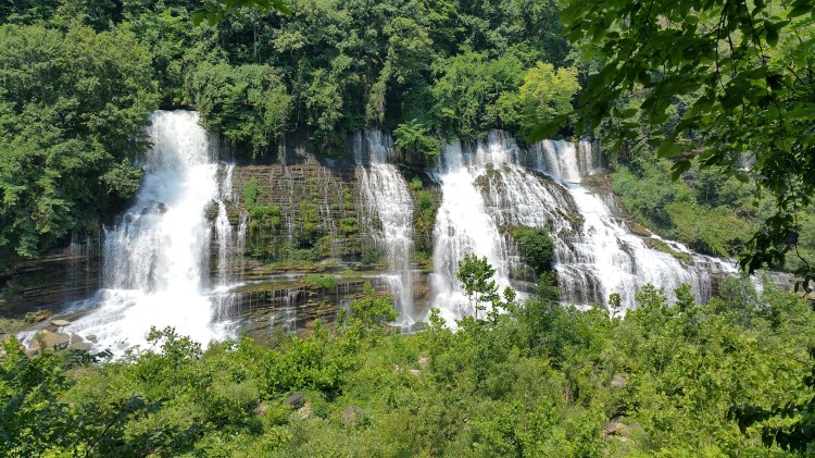 99% of the time, man-made waterfalls aren’t impressive or as enthralling as the real thing. Twin Falls represents the 1%. The Great Falls Dam, built in 1917, was considered a triumph of engineering after several failed attempts at damming the Caney Fork River, which was subject to unpredictable and volatile floods. The dam is located just downstream from the confluence of the Collins and Caney Fork Rivers. Even more, the Rocky River joins Caney Fork a few miles upstream from that. The result is a pretty big river that snakes its way down into the Tennessee Valley.