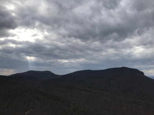 Hanging Rock State Park, about 30 miles north of Winston-Salem, is named for a rock outcropping that hangs (hence the name) over the edge, providing a panoramic view of the surrounding (relatively flat) countryside. Hanging Rock is part of the Sauratown Mountains, a relatively small subrange of the entire Appalachian system that is separated from the rest of the range. It’s highest peak is Moore’s Knob, which tops out at 2,579 feet above sea level and is contained within the park’s boundaries. The most famous peak in the Sauratown range is Pilot Mountain, which has its own state park (though no waterfalls) and is located 20 miles west.